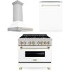 ZLINE Autograph Edition 36 in. Kitchen Package with Stainless Steel Dual Fuel Range with White Matte Door, Range Hood and Dishwasher with Matte Black Accents (3AKP-RAWMRHDWM36-MB)