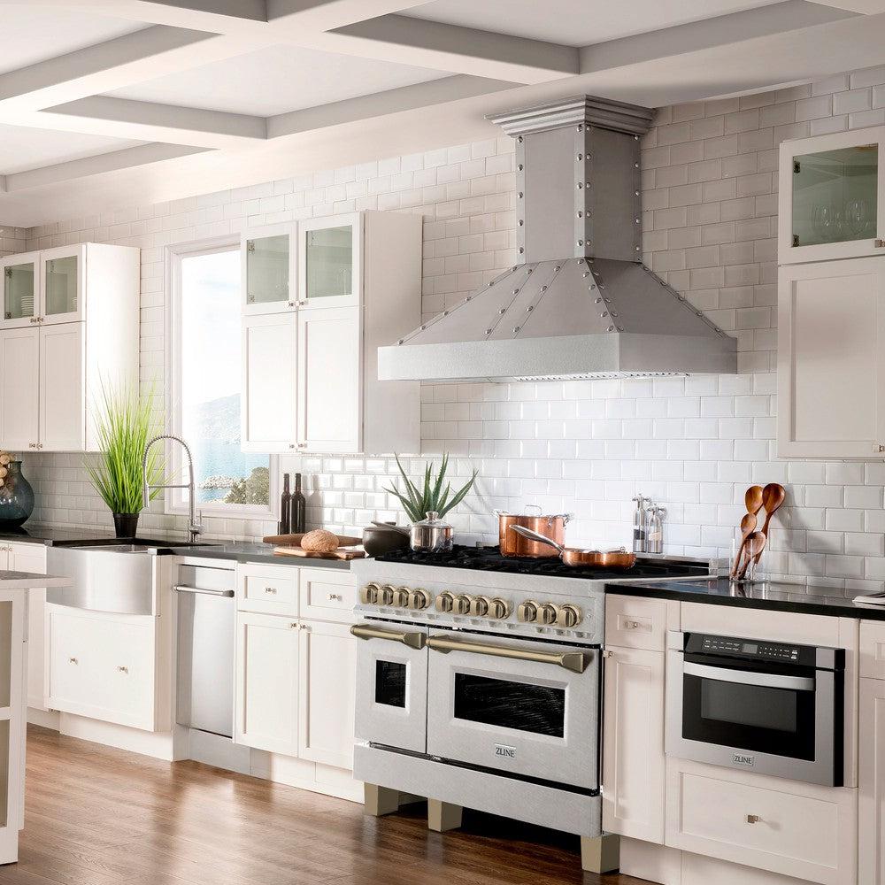 ZLINE Autograph Edition 48 in. 6.0 cu. ft. Legacy Dual Fuel Range with 7 Burner Gas Cooktop and 2 Electric Ovens in DuraSnow Stainless Steel and Champagne Bronze Accents (RASZ-SN-48-CB)