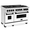 ZLINE Autograph Edition 48 in. 6.0 cu. ft. Legacy Dual Fuel Range with 7 Burner Gas Cooktop and 2 Electric Ovens in Stainless Steel with White Matte Doors and Champagne Bronze Accents (RAZ-WM-48-CB)