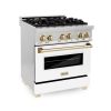 ZLINE Autograph Edition 48 in. 6.0 cu. ft. Legacy Dual Fuel Range with 7 Burner Gas Cooktop and 2 Electric Ovens in Stainless Steel with White Matte Doors and Polished Gold Accents (RAZ-WM-48-G)