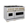 ZLINE Autograph Edition 48 in. 6.7 cu. ft. Classic Double Oven Gas Range with 8 Burner Cooktop in Stainless Steel and Polished Gold Accents (CGRZ-48-G)