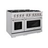 ZLINE Autograph Edition 48 in. 6.7 cu. ft. Select Double Oven Dual Fuel Range with 8 Burner Gas Cooktop in DuraSnow Stainless Steel with White Matte Doors and Polished Gold Accents (HDRSZ-WM-48-G)