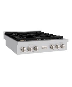 ZLINE Autograph Edition 48 in. Paramount Gas Rangetop with 8 Burners and Porcelain Cooktop in Black Stainless Steel with Champagne Bronze Accents (SRTBZ-48-CB)