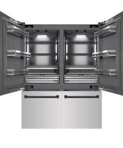 Luxury isn’t meant to be desired – it’s meant to be attainable. The ZLINE Autograph Edition 60 in. 32.2 cu. ft. French Door Built-In Bottom Freezer Refrigerator with Water Dispenser and Ice Maker in Stainless Steel with Graphite Gray Interior and Matte Black Accents (GRBIVZ-304-60MB) provides the ultimate upgrade to the center of your home by pairing premium dual cooling technology with enhanced storage capacity for multiple grocery items. Achieve ZLINE Attainable Luxury® excellence with innovative features designed to enhance your kitchen’s cooling and freezing capability.