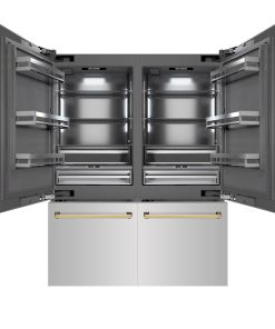Luxury isn’t meant to be desired – it’s meant to be attainable. The ZLINE Autograph Edition 60 in. 32.2 cu. ft. French Door Built-In Bottom Freezer Refrigerator with Water Dispenser and Ice Maker in Stainless Steel with Graphite Gray Interior and Polished Gold Accents (GRBIVZ-304-60G) provides the ultimate upgrade to the center of your home by pairing premium dual cooling technology with enhanced storage capacity for multiple grocery items. Achieve ZLINE Attainable Luxury® excellence with innovative features designed to enhance your kitchen’s cooling and freezing capability.
