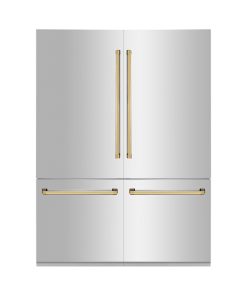Luxury isn’t meant to be desired – it’s meant to be attainable. The ZLINE Autograph Edition 60 in. 32.2 cu. ft. French Door Built-In Bottom Freezer Refrigerator with Water Dispenser and Ice Maker in Stainless Steel with Polished Gold Accents (RBIVZ-304-60-G) provides the ultimate upgrade to the center of your home by pairing premium dual cooling technology with enhanced storage capacity for multiple grocery items. Achieve ZLINE Attainable Luxury® excellence with innovative features designed to enhance your kitchen’s cooling and freezing capability.