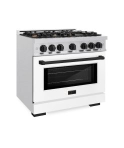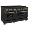 ZLINE Autograph Edition 60 in. 7.4 cu. ft. Legacy Dual Fuel Range with 9 Burner Gas Cooktop and 2 Electric Convection Ovens in DuraSnow Stainless Steel with White Matte Doors and Matte Black Accents (RASZ-WM-60-MB)