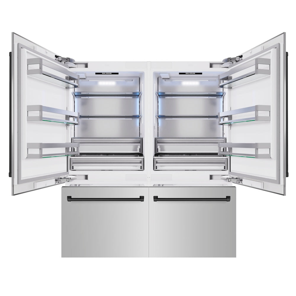 Luxury isn’t meant to be desired – it’s meant to be attainable. The ZLINE Autograph Edition 72 in. 39.6 cu. ft. French Door Built-In Bottom Freezer Refrigerator with Water Dispensers and Ice Makers in Stainless Steel with Matte Black Accents (RBITZ-304-72MB) provides the ultimate upgrade to the center of your home by pairing premium dual cooling technology with enhanced storage capacity for multiple grocery items. Achieve ZLINE Attainable Luxury® excellence with innovative features designed to enhance your kitchen’s cooling and freezing capability.