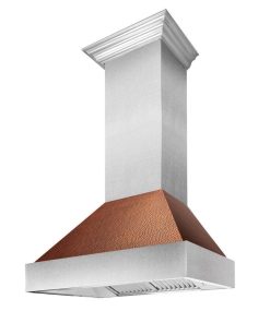 ZLINE Ducted Fingerprint Resistant Stainless Steel Range Hood with Hand-Hammered Copper Shell (8654HH)