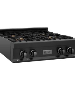 ZLINE Kitchen Package with 30 in. Black Stainless Steel Rangetop and 30 in. Over The Range Microwave with Modern Handle (2KP-RTBOTR30)
