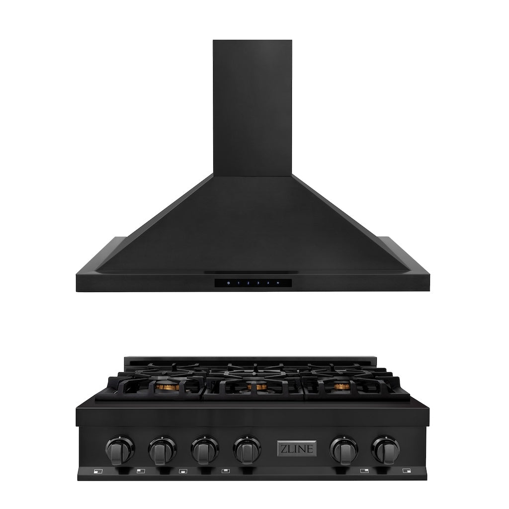 ZLINE Kitchen Package with 36 in. Black Stainless Steel Rangetop and 36 in. Convertible Range Hood (2KP-RTBRH36)