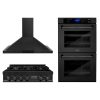 ZLINE Kitchen Package with 48 in. Black Stainless Steel Rangetop, 48 in. Convertible Range Hood and Double Wall Oven (3KP-RTBRH48-AWD)