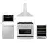 ZLINE Kitchen Package with Refrigerator, 30 in. Stainless Steel Gas Range, 30 in. Range Hood, Microwave Drawer, and 24 in. Tall Tub Dishwasher (5KPR-SGRRH30-MWDWV)