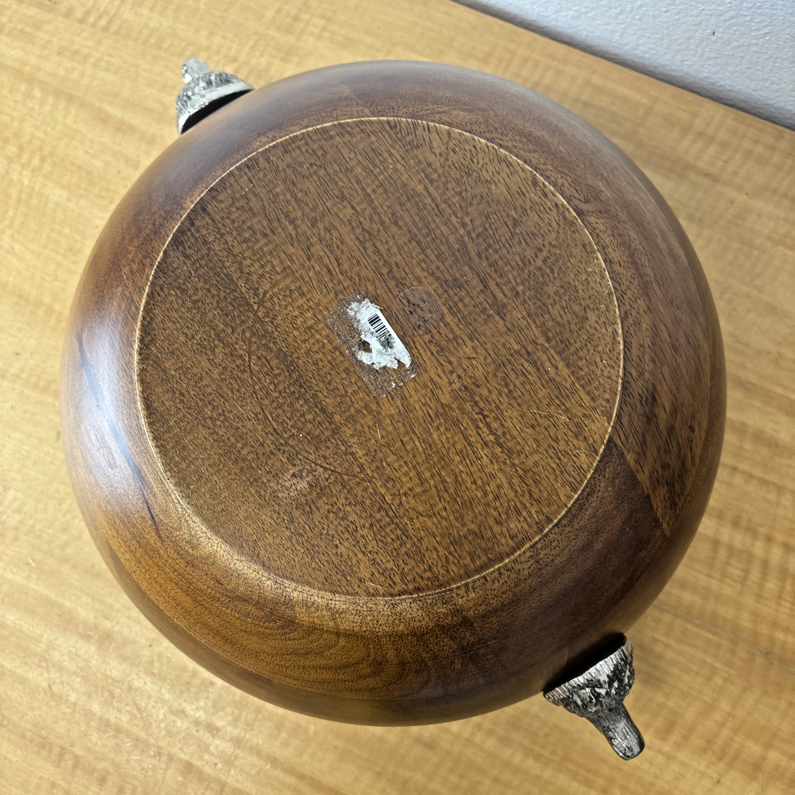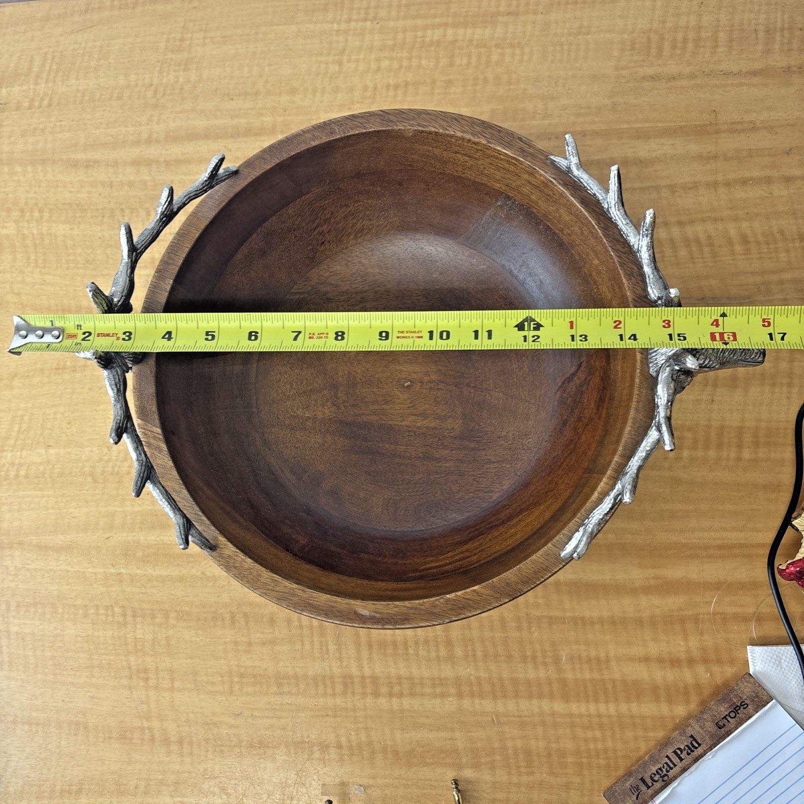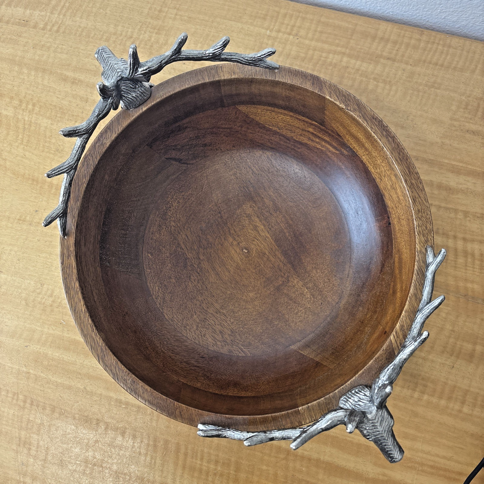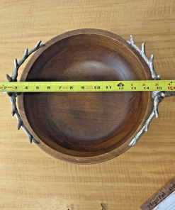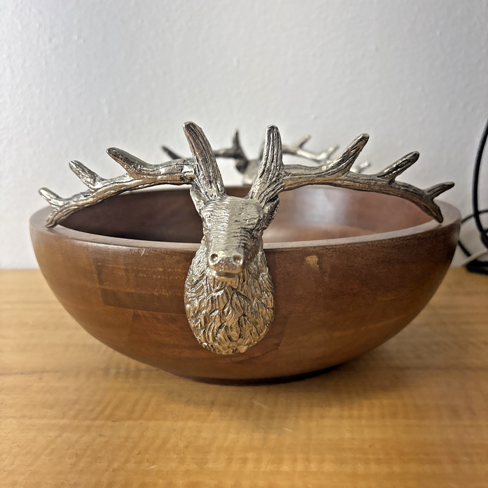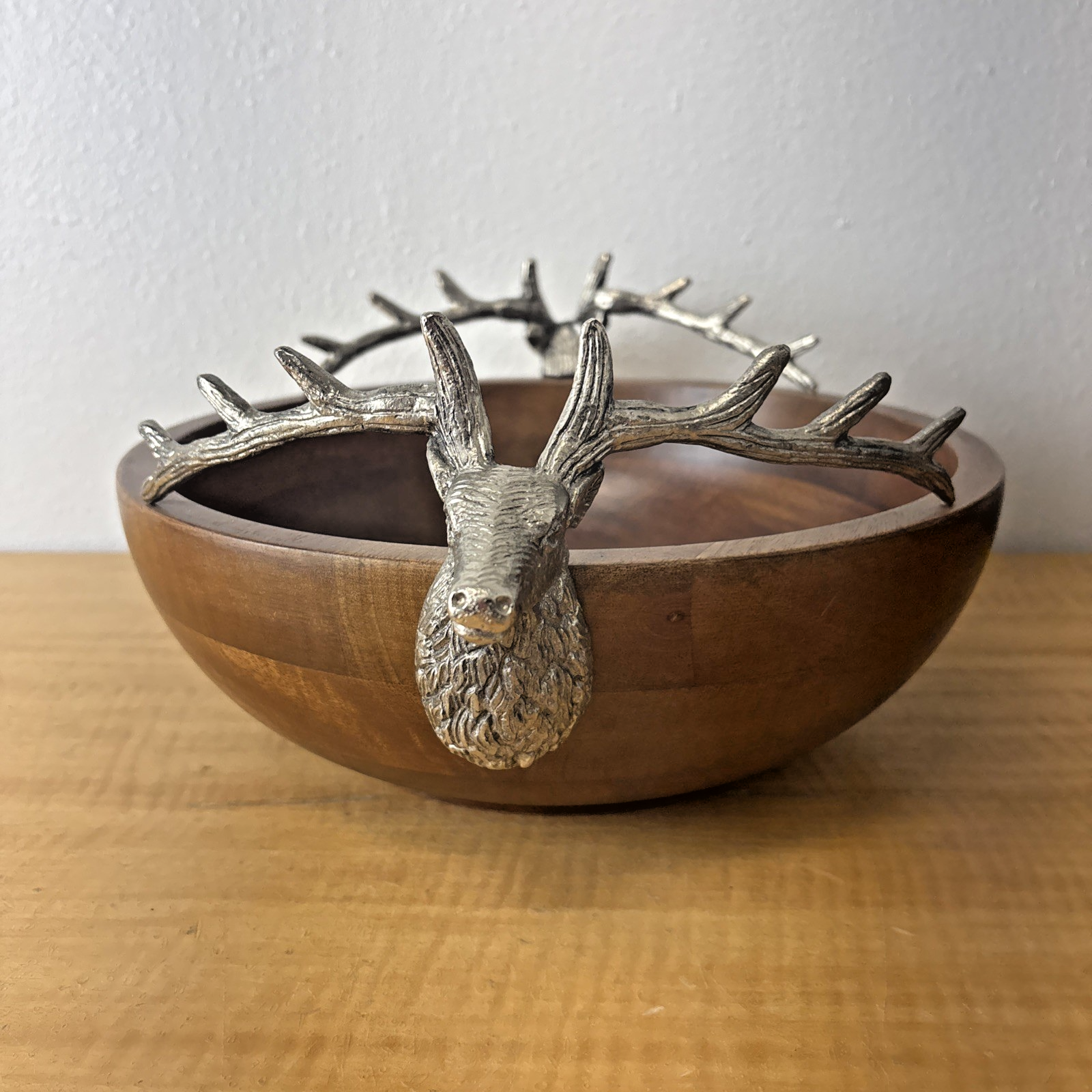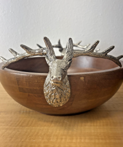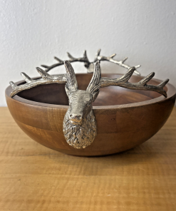 Zodax Pewter Stag Head Handles Wooden Salad Bowl