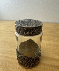 ANTIQUE DUTCH HOLLAND SILVER REPOUSSE GLASS JAM JAR, FRUIT .