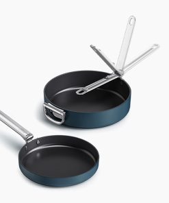 Space Folding Handle Ceramic Non-stick 2-piece Blue Frying Pan Set