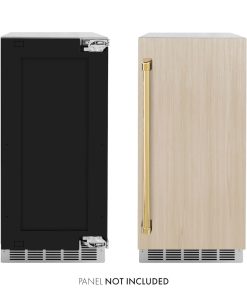 ZLINE Autograph Edition 15 in. Touchstone Clear Cube Ice Maker with Drain Pump and Panel Ready Door with Polished Gold Handle (ICCDPZ-15-G)