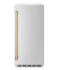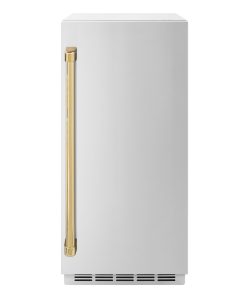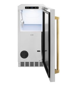 ZLINE Autograph Edition 15 in. Touchstone Clear Cube Ice Maker with Drain Pump and Solid Stainless Steel Door with Polished Gold Handle (ICCDZ-ST-15-G)