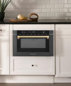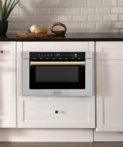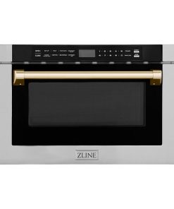 ZLINE Autograph Edition 24 in. 1.2 cu. ft. Built-in Microwave Drawer with a Traditional Handle in Stainless Steel and Polished Gold Accents (MWDZ-1-H-G)