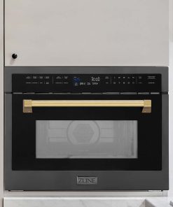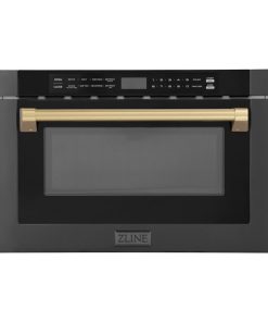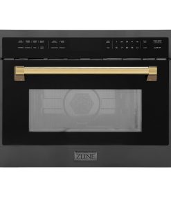 ZLINE Autograph Edition 24 in. 1.6 cu ft. Built-in Convection Microwave Oven in Black Stainless Steel with Polished Gold Accents (MWOZ-24-BS-G)