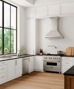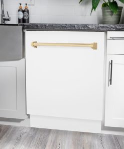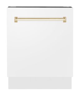 ZLINE Autograph Edition 24 in. 3rd Rack Top Control Tall Tub Dishwasher in White Matte with Polished Gold Accent Handle, 51dBa (DWVZ-WM-24-G)