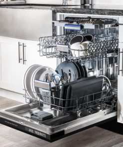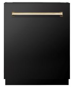 ZLINE Autograph Edition 24 in. 3rd Rack Top Control Tall Tub Dishwasher in Black Stainless Steel with Polished Gold Accent Handle, 51dBa (DWVZ-BS-24-G)