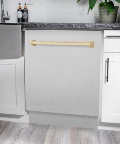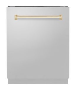 ZLINE Autograph Edition 24 in. 3rd Rack Top Control Tall Tub Dishwasher in Stainless Steel with Polished Gold Handle, 51dBa (DWVZ-304-24-G)