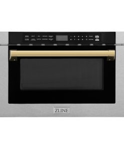 ZLINE Autograph Edition 24 in. Microwave in Fingerprint Resistant Stainless Steel with Traditional Handles and Polished Gold Accents (MWDZ-1-SS-H-G)