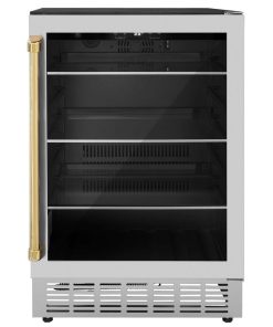 ZLINE Autograph Edition 24 in. Monument 154 Can Beverage Fridge in Stainless Steel with Polished Gold Accents (RBVZ-US-24-G)