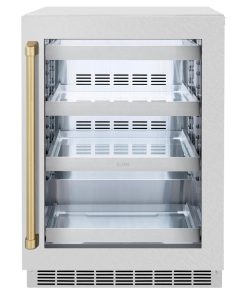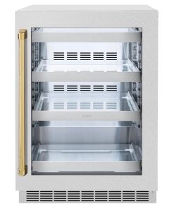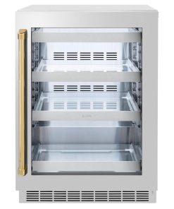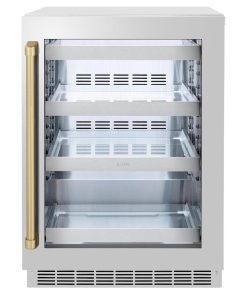ZLINE Autograph Edition 24 in. Touchstone 151 Can Beverage Fridge With DuraSnow Stainless Steel Glass Door And Polished Gold Handle (RBSOZ-SN-24-G)