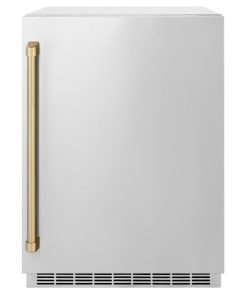 ZLINE Autograph Edition 24 in. Touchstone 151 Can Beverage Fridge With Solid Stainless Steel Door And Polished Gold Handle (RBSOZ-ST-24-G)