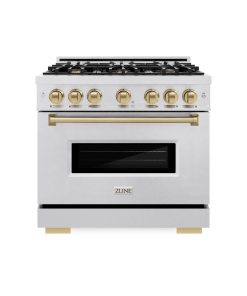 ZLINE Autograph Edition 36 in. 5.2 cu. ft. Classic Gas Range with 6 Burner Cooktop and Convection Gas Oven in Stainless Steel and Polished Gold Accents (CGRZ-36-G)