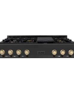 ZLINE Autograph Edition 48 in. Legacy Gas Rangetop with 7 Burners and Porcelain Cooktop in Black Stainless Steel with Polished Gold Accents (RTBZ-48-G)