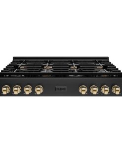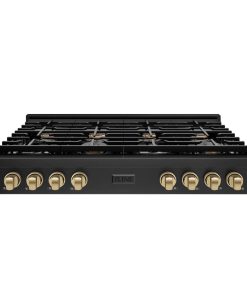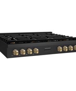 ZLINE Autograph Edition 48 in. Paramount Gas Rangetop with 8 Burners and Porcelain Cooktop in Black Stainless Steel with Polished Gold Accents (SRTBZ-48-G)