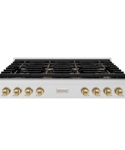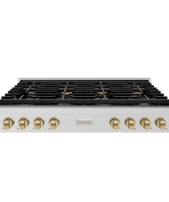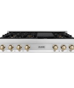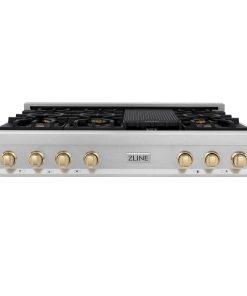 ZLINE Autograph Edition 48 in. Legacy Gas Rangetop with 7 Burners and Porcelain Cooktop in Stainless Steel with Polished Gold Accents (RTZ-48-G)