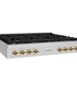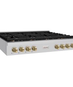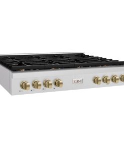 ZLINE Autograph Edition 48 in. Paramount Gas Rangetop with 8 Burners and Porcelain Cooktop in Stainless Steel with Champagne Bronze Accents (SRTZ-48-CB)