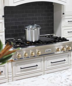 ZLINE Autograph Edition 48 in. Paramount Gas Rangetop with 8 Burners and Porcelain Cooktop in Stainless Steel with Polished Gold Accents (SRTZ-48-G)