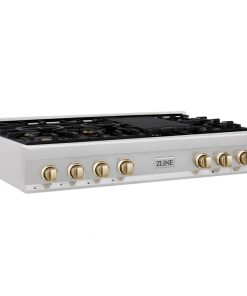 ZLINE Autograph Edition 48 in. Legacy Gas Rangetop with 7 Burners and Porcelain Cooktop in DuraSnow Stainless Steel with Polished Gold Accents (RTSZ-48-G)