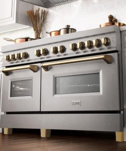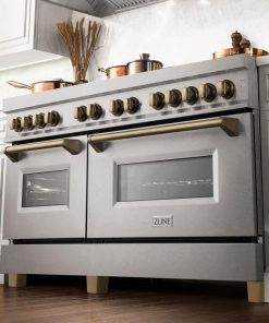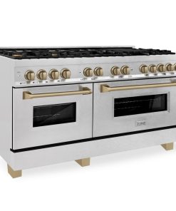 ZLINE Autograph Edition 60 in. 7.4 cu. ft. Legacy Dual Fuel Range with 9 Burner Gas Cooktop and 2 Electric Convection Ovens in DuraSnow Stainless Steel and Champagne Bronze Accents (RASZ-SN-60-CB)