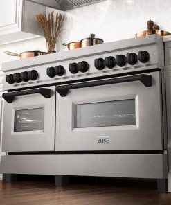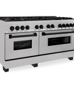 ZLINE Autograph Edition 60 in. 7.4 cu. ft. Legacy Dual Fuel Range with 9 Burner Gas Cooktop and 2 Electric Convection Ovens in DuraSnow Stainless Steel and Matte Black Accents (RASZ-SN-60-MB)