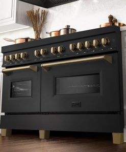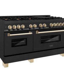 ZLINE Autograph Edition 60 in. 7.4 cu. ft. Legacy Dual Fuel Range with 9 Burner Gas Cooktop and 2 Electric Convection Ovens in Black Stainless Steel and Polished Gold Accents (RABZ-60-G)